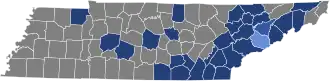 The 1863 Tennessee gubernatorial election was held on August 6, 1863, to elect the next governor of Tennessee. Incumbent Democratic governor Isham G. Harris was prohibited by the state constitution from seeking a fourth consecutive term.[2] On July 17, 1863, the state's Confederate leaders met in Winchester, Tennessee, and nominated Democrat Robert L. Caruthers for governor.[3][4] 30 counties, mainly those still under Confederate control, participated in the election. Caruthers won effectively unopposed, with only two of the 30 counties recording votes for Unionist Parson Brownlow.[1]