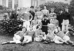 The 1882–83 season was the fifth season in the history of West Bromwich Albion Football Club. This was the club's first season at their fourth ground, the Four Acres. The ground had been home to the West Bromwich Dartmouth Cricket Club since 1834, but the cricket club allowed Albion to play football matches there on Saturdays and Mondays.[3] The club wore two different kits during 1882–83: as well as the chocolate and blue halves from the previous season, the club also sported narrow red and white hoops.[4][5]
