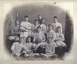According to Ellsworth P. Bertholf's biographer C. Douglas Kroll, the first evidence of a form of football at the United States Naval Academy came in 1857, but the school's cadets lost interest in the game shortly afterward.[1] The Naval Academy fielded its first official football program in 1879, headed by William John Maxwell. The team played one match (a 0–0 tie), after which the program went on hiatus for two years. It returned with the 1882 season under the guidance of player-coach Vaulx Carter. That season and the following two years of football, were single-game seasons played against rival Johns Hopkins; Navy won two of the three years. The 1885 season was the first the school participated in a multi-game year, playing three games, including the first against nearby St. John's College. The season ended in what was generally considered a disappointment, ending in a 1–2 record.[2][3]