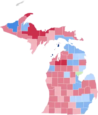 | Mackinac | 625 | 40.24% | 913 | 58.79% | 15 | 0.97% | 0 | 0.00% | -288 | -18.54% | 1,553 |