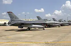 Following their withdrawal from the Vietnam War, numerous USAF F-100D Super Sabres were turned over to the Air National Guard. Tactical Air Command realigned the 188th into a Tactical Fighter Group in 1972, and equipping the unit with Vietnam Veteran F-100D and twin-seat F-100F Trainers. In 1979, the Super Sabre was being retired and the 184th TFS began receiving F-4C Phantom IIs to be used in an air defense role. In 1988, as part of the retirement of the Phantom II, the squadron began receiving Block 15 F-16A Fighting Falcons. The first F-16 delivery to the squadron was on 1 July 1988 and the formal acceptance of the F-16 happened on 15 October. On 15 March 1992 the 184th dropped the Tactical name from the squadron as the parent 184th converted to the USAF Objective organization.