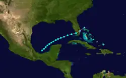 According to Weather Bureau meteorologist Charles L. Mitchell in 1924, this storm was first observed over the Bay of Campeche on October 13.[6] Moving generally northwestward to west-northwestward across the Gulf of Mexico, the cyclone struck just south of Everglades City, Florida, on October 16. The storm quickly weakened to a tropical depression before it emerged into the Atlantic near present-day Delray Beach later that day. Early on October 17, the depression dissipated just north of Grand Bahama island in the Bahamas.[5] Chenoweth argued for the removal of this system from HURDAT, finding "No evidence in land-based reports or from ships".[4]
