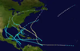 | Nine | October 2–14 | Tropical storm | 70 (110) | Unknown | Cuba (La Habana Province), Florida, the Bahamas (Grand Bahama) | Unknown | 8 | [4] | ||