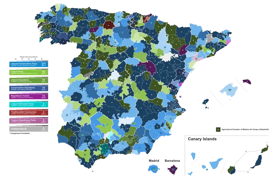 In the ensuing general election, Silvela's Conservative party secured an overall majority in both chambers.