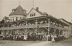 Although Michigan's football training camp had previously been held at Whitmore Lake, Yost moved the team's pre-season camp to the Epworth Hotel in Epworth Heights, a summer resort located three miles from Ludington, Michigan. Yost hoped that the northern location would allow the team to practice away from the September heat. Training camp opened on September 14, 1903, and was attended by 25 players, Yost, and trainer Keene Fitzpatrick.[8][9] While in Ludington, the Michigan players played a baseball game against the local team and attended a dance at the Stearns Hotel in downtown Ludington. The locals were surprised when the guests of honor left the dance at 10:05 pm, under orders from Keene Fitzpatrick.[10] The squad returned to Ann Arbor on September 26 and joined a separate body of recruits training under the direction of assistant coach Dan McGugin.[8]