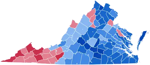 | Wise County | 897 | 36.11% | 1,572 | 63.29% | 9 | 0.36% | 6 | 0.24% | -675 | -27.17% | 2,484 |