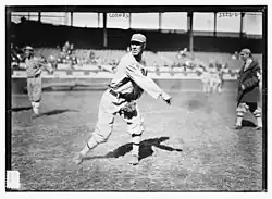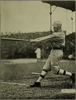 Before the series, pundits were split over who the favorites were.[4] The pitching of the Athletics was generally held to be superior to that of the Cubs, as the Cubs pitchers were thought to be merely decent.[4][5][6][7] The Cubs, however, were felt to have a stronger catcher in Johnny Kling,[4] and slightly stronger batters as well.[7] Altogether, Philadelphia had a younger team, while Chicago had an older but experienced group of players.[8] Former coach Ned Hanlon picked the Athletics, as did former pitcher Jack Dunn.[6] However, John McGraw, manager of the New York Giants, held that the Cubs would win the series.[7] Before the series, the Athletics played the All-Stars, featuring Ty Cobb; they played poorly on the Friday before the Series, which lowered confidence in the ability of the Philadelphia team.[9][10] Second baseman Johnny Evers was out injured for the Cubs, while outfielder and strong batter Rube Oldring was injured for the Athletics.[7]