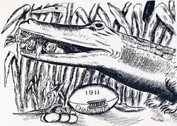 The 1911 Florida football team was the first to officially use the "Gators" nickname, though the exact timing and rationale behind the choice is unclear. The squad was captained by Neal "BoGator" Storter, and according to university lore and former UF historian Carl Van Ness, the team simply adopted his nickname.[4][5] However, Storter himself denied the story and stated the mascot originated when a reporter for the Macon Telegraph wrote "Macon to be invaded by a bunch of alligators" before Florida arrived in town to play the Mercer Bears in 1910.[5][6]