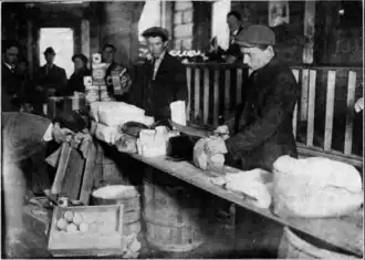 While the bill had addressed the number of hours that could be worked, the legislation did not address the impact that the change would have on wages.[6] As a result, when the law came into effect, many companies reduced pay in proportion to the decrease in hours worked.[6] This led to numerous and sporadic walkouts throughout the state, with workers objecting to receiving less money.[6] A similar situation had occurred previously in Massachusetts when that state's government had passed a similar law that decreased working hours that similarly led to strikes,[6] including the 1912 Lawrence textile strike.[29] The Lawrence strike, led by the IWW and involving many immigrant workers,[30] such as Poles,[19] had occurred just a few months before the labor disputes in New York.[31] In many cases, the companies were able to quickly resolve these disputes by adjusting wages.[6] In Little Falls, the Phoenix Knitting Mill and the Gilbert Knitting Mill also lowered wages according to the reduced hours, leading to a labor strike at these two mills.[6][19]