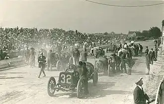 Once again the AC de la Sarthe et de l’Ouest[19](forerunner of the Automobile Club de l'Ouest) organised its own event – the Grand Prix of France, also known as the Coupe de le Sarthe, and not to be confused with the Grand Prix run by the ACF. It used the same course as the previous year, but this time ran in a clockwise direction. Both Grand Prix and voiturette cars were entered.[19] However the only large race-cars to arrive were the works Peugeots of Boillot and Goux, and a SPA. Many of the French voiturette teams at Dieppe were entered and this time both Thomas and Zuccarelli with the Lion-Peugeot L3.