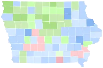 | Poweshiek | 1,631 | 35.89% | 902 | 19.85% | 1,792 | 39.43% | 107 | 2.35% | 113 | 2.49% | -161 | -3.54% | 4,545 |