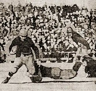 There were 15 members of the Great Lakes wartime teams who played professionally during the early years of the National Football League (NFL).[5] Three of these — Hallas, quarterback Jimmy Conzelman, and back Paddy Driscoll, would later be inducted as members of the Pro Football Hall of Fame.[5] In addition, 10 Bluejackets went on to be college head coaches and four played Major League Baseball.[6]