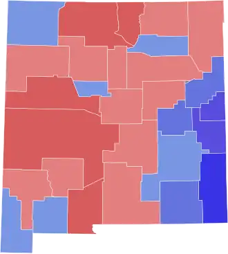 | Doña Ana | 2,531 | 63.77% | 1,426 | 35.93% | 12 | 0.30% | 1,105 | 27.84% | 3,969 |