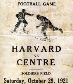- ^ a b c d "Official Program: Football Game, Harvard vs. Centre" (PDF). Irwin Score Board. October 29, 1921. pp. 1–3. Archived from the original (PDF) on February 21, 2015. Retrieved September 20, 2022.