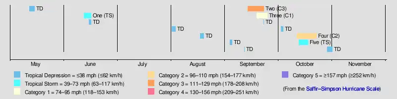 - ^ Neal Dorst (June 2, 2016). "When is hurricane season ?". National Oceanic and Atmospheric Administration. Retrieved July 22, 2019.