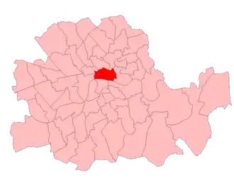 ![]() A map of parliamentary constituencies within the County of London at the time of the by-election, with City of London highlighted in red. | |||||||||||||||||||