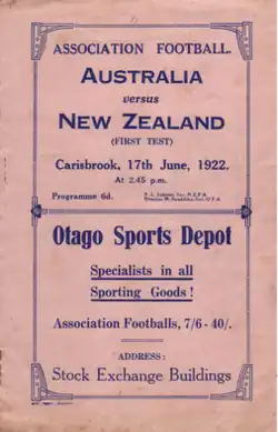 - ^ "First Soccer Test". Evening Post. Vol. 103, no. 142. Papers Past. 19 June 1922. p. 2. Retrieved 22 September 2022.