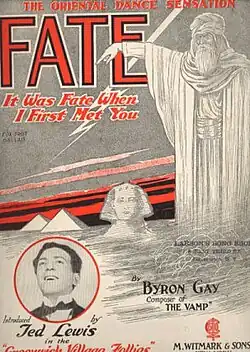 Sheet music cover of "Fate" featuring a photo of jazz band leader Ted Lewis.