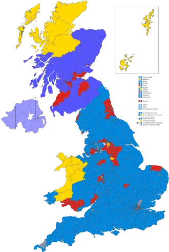 ![]() Diagram showing the composition of the House of Commons following the election | |||||||||||||||||||||||||||||||||||||||||||||||||