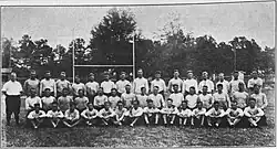 Practice began on September 14.[3] Coaches Tom Sebring, A. C. Tipton, Everett Yon, and Herb Bunker were in charge of the first workout.[4] Though he graduated, Clyde Norton was eligible to return.[5] Despite losing eight players, prospects were bright.[6][7] 1925 saw the south's widespread use of the forward pass.[8] As coach Sebring recalled, quarterback Edgar C. Jones "held back from calling plays for himself the year before. I told him not to hold back."[9]