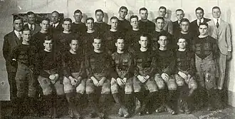The starting lineup was Gamble (left end), Wight (left tackle), Levy (left guard), H. Wilson (center), Blackledge (right guard), P. Brown (right tackle), D. Wilson (right end), Lautenschlaeger (quarterback), Flournoy (left halfback), Morgan (right halfback), Lamprecht (fullback).[27][28]