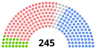 | Total seats | 14 | 16 | 21 | 17 | 82 | 65 | 11 | 14 | 4 | 1 | 245 | ||