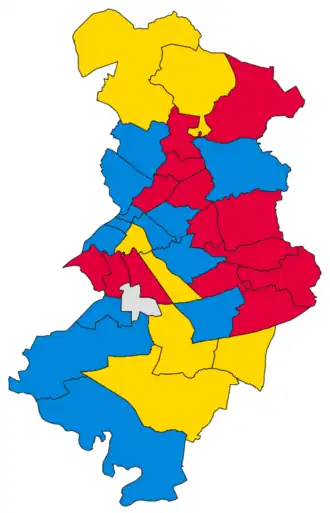 | Conservative Party | 63,622 (40.9%) | 13 (37.1%) | 13 / 35
