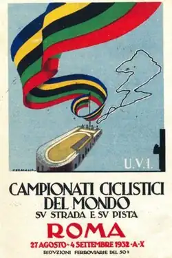 The 1932 UCI Track Cycling World Championships were the World Championship for track cycling. They took place in Rome, Italy from 27 August to 4 September 1932.[1] Three events for men were contested, two for professionals and one for amateurs.