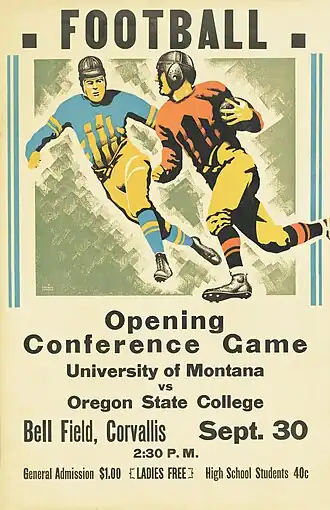 - ^ Associated Press, "Grizzlies Beaten, 20 to 0, by Oregon State College: Montana Loser in First Conference Gridiron Struggle," The Missoulan, Oct. 1, 1933, p. 7.