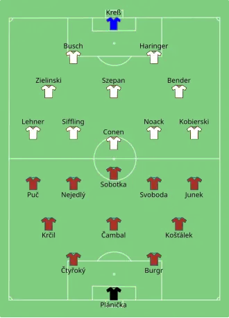 An extremely tough game prevented the two teams from truly showing the technical skills they possessed. Austria took an early lead with Johann Horvath, who finished a well-organised team move. Austria doubled their lead in the early stages of the second half. Shortly after, Hungary got one back thanks to a penalty caused by Karl Sesta. The match hung in the balance until Hungary lost two players: Imre Markos was red carded and István Avar got injured. After that, Austria comfortably cruised to the victory.[2]
