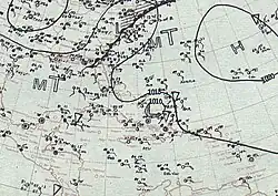 The first recorded instance of an aircraft flown for the specific purpose of locating a hurricane occurred on the afternoon of September 2, 1935. The Weather Bureau's 1:30 PM advisory[6] placed the center of the hurricane at north latitude 23° 20', west longitude 80° 15', moving slowly westward. This was about 27 miles (43 km) north of Isabela de Sagua, Villa Clara, Cuba, and 145 miles (233 km) east of Havana. Captain Leonard Povey of the Aviation Corps of the Cuban Army (Cuerpo de Aviación del Ejército de Cuba) volunteered to investigate the threat to the capital. Flying a Curtis Hawk II, Captain Povey, an American expatriate, who was the Aviation Corps' chief training officer, observed the storm north of its reported position. Because he was flying an open-cockpit biplane, he opted not to fly into the storm.[7][8][9] He later proposed an aerial hurricane patrol.[10] Nothing further came of this idea until June 1943, when Colonel Joe Duckworth and Lieutenant Ralph O'Hair flew into a hurricane near Galveston, Texas.[11]