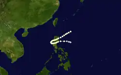 On July 1, a typhoon formed east of the Philippines island of Samar. The system moved to the northwest, brushing Luzon on July 4, but sparing the island from strong winds. The typhoon moved across the Luzon Strait before weakening, making landfall in southeastern China near Shantou on July 5. The storm turned northeastward and dissipated by July 6.[5][6]