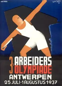 The 1937 Workers' Summer Olympiad was the sixth edition of International Workers' Olympiads. The games were held from 25 July to 1 August at Antwerp in Belgium. They were originally planned for Barcelona 1936, but cancelled due to the outbreak of the Spanish Civil War.[1]