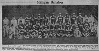 - ^ Doug Bean (September 15, 1940). "Milligan Scores Hard-Earned 12-0 Victory Over Austin Peay: Williams And Burton Score For Buffaloes". Sunday Press-Chronicle (Johnson City, TN). p. 9 – via Newspapers.com.