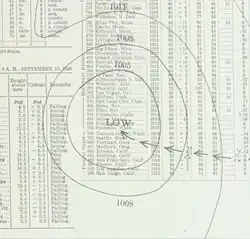Though initially perceived to be a potential threat to The Bahamas and Florida due to its westward motion, the hurricane curved northward on September 13, mitigating any evacuation procedures.[5] Despite the storm's change in track, the United States Weather Bureau cautioned shipping interests in the outlying islands of the Bahamas.[6] Pan American World Airways was forced to postpone two transatlantic flights from New York City to Portugal due to the storm.[7][8] After the hurricane recurved, the Weather Bureau advised caution to areas of the New England coast, particularly in Nantucket and Cape Cod, Massachusetts, where strong winds and waves were anticipated.[7] Storm warnings were posted for coastal areas from Hatteras, North Carolina to Eastport, Maine on September 16. The warnings were discontinued after the hurricane passed the warned areas.[8]