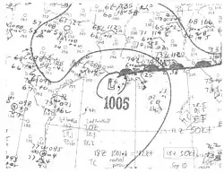 The Atlantic hurricane season officially began on June 15 and ended on November 15.[4] A total of 21 tropical cyclones developed.[2] Fourteen of those cyclone intensified into tropical storms, the most since 1936, while eight of those reached hurricane status, the highest number since 1933. Three of those hurricanes intensified into major hurricanes.[1] The season included the first instance of upper-atmosphere data via radiosonde being successfully incorporated into tropical cyclone track forecasting for a fully developed hurricane, which occurred as the Cuba–Florida hurricane approached Cuba.[5] Collectively, the tropical cyclones of the 1944 Atlantic hurricane season caused approximately $202 million in damage and at least 1,025 fatalities.[6][7][8][9]