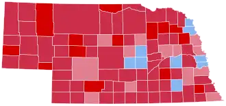 Dewey won Nebraska by a large margin of 17.2%, a 2.8% increase from Wendell Willkie's margin 4 years earlier in 1940. Key to his victory were his large margins in the rural agriculture-reliant counties, which had supported Roosevelt in his previous runs in 1932 and 1936, however turned against him in 1940, largely due to parts of The New Deal which paid farmers to destroy their crops to prevent overproduction backfiring, and causing food shortages, along with requiring more food to be imported from other countries.[4][5] With a swing to the right of 2.8%, Nebraska continued its heavy trend to the Republican column, with 1944 marking its 3rd consecutive swing the right, which began in 1936 with Alf Landon's surprising overperformance. Roosevelt did however manage to flip Greeley County by 23 votes, which had voted for Willkie.