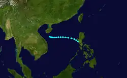 Olga formed in the South China Sea on October 16. It moved west and dissipated on October 19.