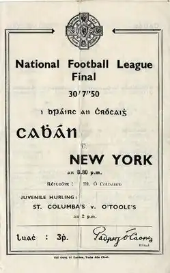 Cavan beat Meath in the home final to get revenge for the defeat in the 1949 All-Ireland Final. For the first time, New York received a bye to the final, where they defeated the "home" champions.[1][2][3][4][5]