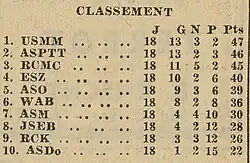 | 5 | AS Orléansville | 18 | 9 | 3 | 6 | 30 | 14 | +16 | 39 | |