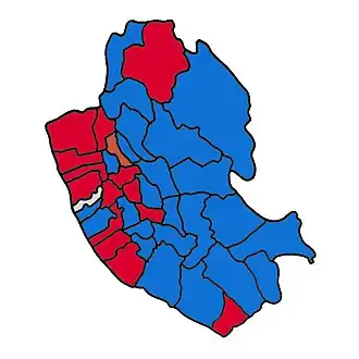 ![]() Map of Liverpool showing wards won (first placed party)[1] | ||