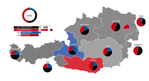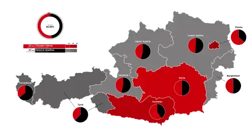 Presidential elections were held in Austria in 1951, the first time that the President of Austria had been elected by popular vote. A first round of voting was held on 6 May, and with no candidate achieving a majority of the votes, a second round was held on 27 May between the top two candidates, Mayor of Vienna, Theodor Körner representing the Socialist Party's, and Upper Austria Governor Heinrich Gleißner of the Austrian People's Party. Although Gleißner received the most votes in the first round Körner won the runoff with 52% of the vote.[1]