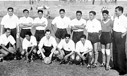 On the other hand, River Plate, coached by José María Minella, had won the Primera División title in 1952 with 40 points in 30 matches played.[7] Some players that had been part of legendary team La Máquina (such as Ángel Labruna, and Félix Loustau) were still part of the squad. Uruguayan striker Walter Gómez (who was in River since 1945) had consolidated as a keyplayer in the offensive line along with Labruna and Loustau.[8]