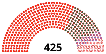 There were 425 seats.[12] The number of seats would be increased in the subsequent elections.[12] In return for accepting the "leading role" of the PZPR—a condition of their continued existence—the minor parties in the Front received a fixed number of seats in the Sejm.[13]
