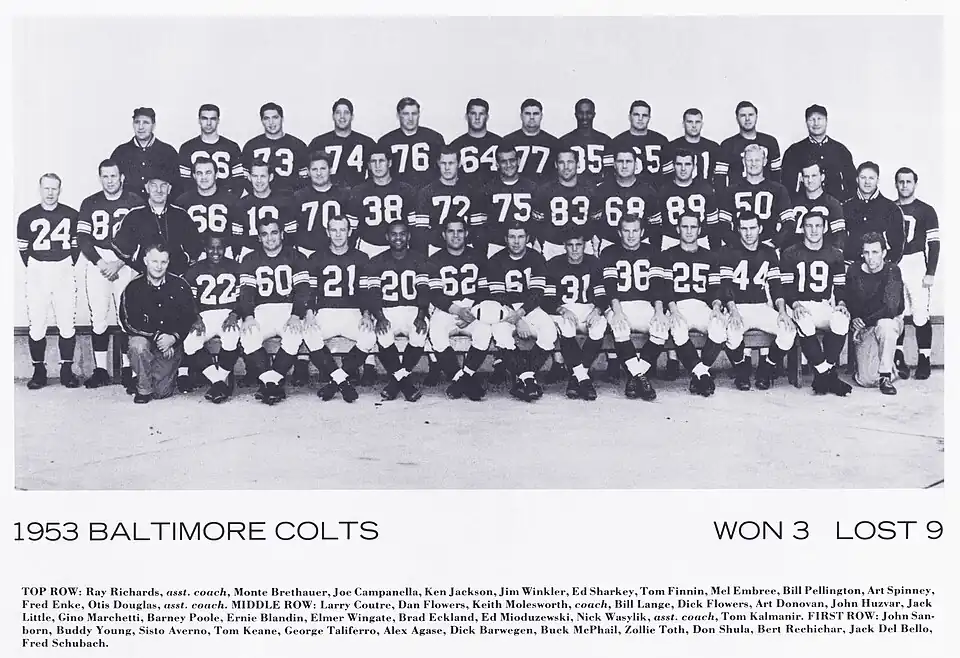 - ^ a b c d Sam Banks (ed.), The Baltimore Colts: 1953 Press, Radio, and Television Guide. Baltimore, MD: Baltimore Colts Football Club, 1953, p. 3.
