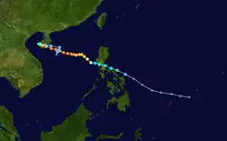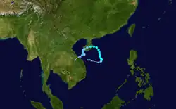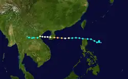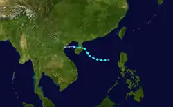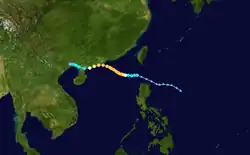 04W formed on June 21. The storm moved northwest, making landfall in the Philippines on June 25, reaching its peak intensity. On June 26, the storm quickly curved north and then quickly moved south the same day. A few days later, the storm made landfall in Hainan and later Mainland China.[5]