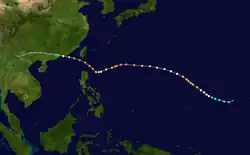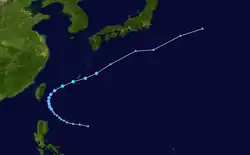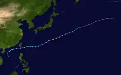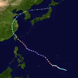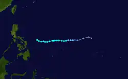 Mamie formed east of the Philippines on July 30. It moved east and reached peak intensity on August 1.