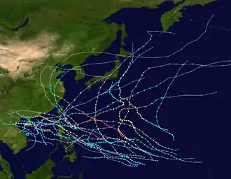 24 tropical depressions formed this year in the Western Pacific. 17 storms reached typhoon intensity, and 5 reached super typhoon strength.