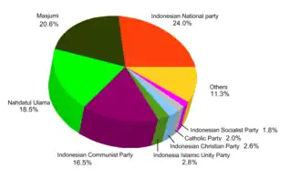 According to former agent Joseph Smith, the CIA covertly gave a million dollars to the centrist Masyumi Party to reduce support for Sukarno and the Communist Party of Indonesia during the election.[19]