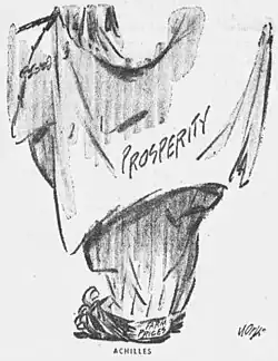 - Robert York of The Louisville Times, for his cartoon, "Achilles", showing a bulging figure of American prosperity tapering to a weak heel labeled "Farm Prices".